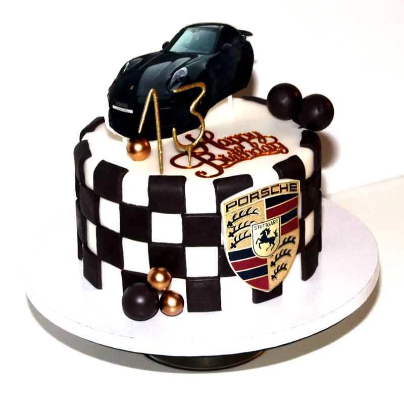 /    /  Torten  /  Porsche Torte – Edle Fondant-Torte mit Original Porsche Logo